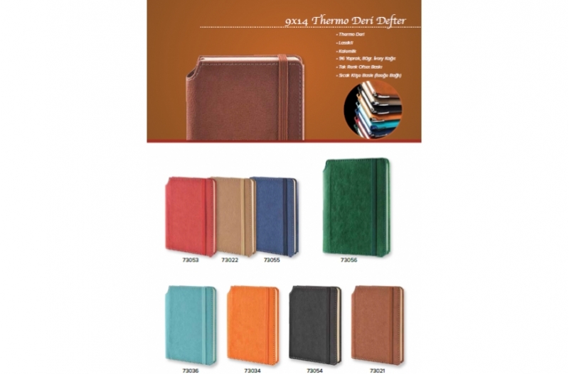 Thermo Deri , Lastikli , Kalemlik , 96 Yaprak , 80gr. İvory Kağıt , Tek Renk Ofset Baskı, Sıcak Klişe Baskı (isteğe bağlı)