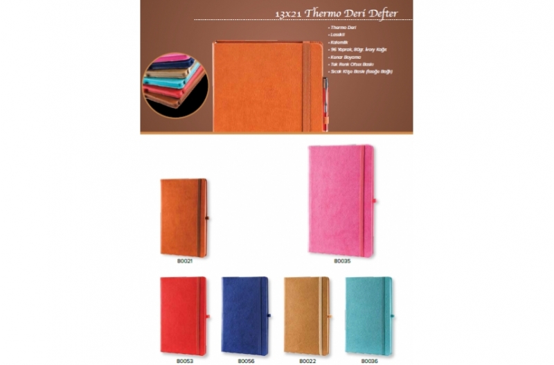 Thermo Deri , Lastikli , Kalemlik , 96 Yaprak , 80gr. İvory Kağıt , Kenar Boyama , Tek Renk Ofset Baskı, Sıcak Klişe Baskı (isteğe bağlı)